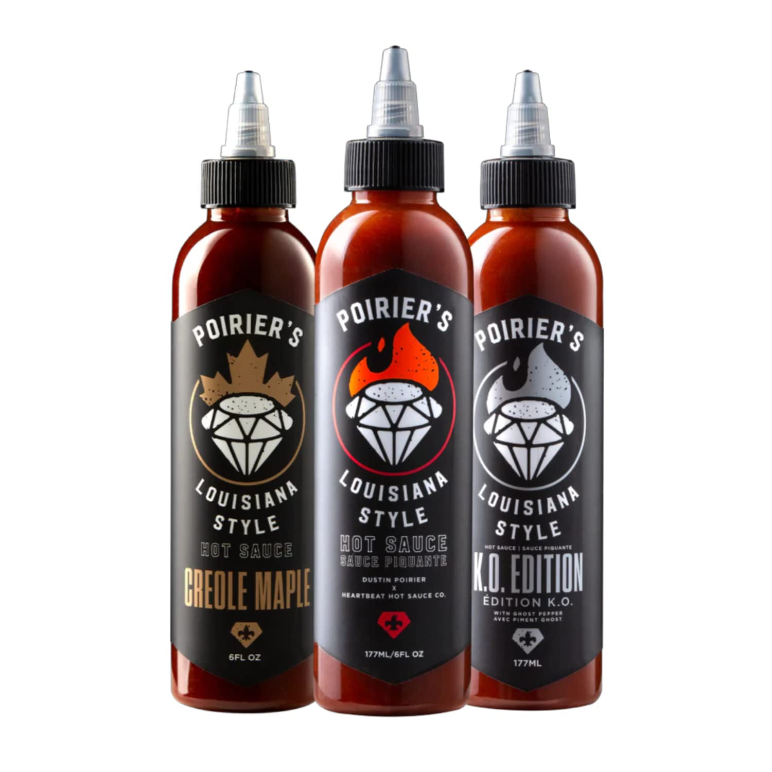 Poirier S Louisiana Style Hot Sauce Trio By Dustin Poirier And Heartbeat Hot Sauce Co 1 X Original 1 X K O Edition 1 X Creole Maple Amazon Ca Grocery Gourmet Food